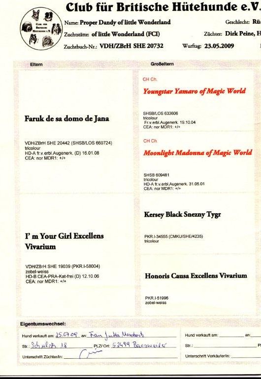 ![]() Proper Dandy of little Wonderland "Linus" Ahnentafel Linus ist inzwischen 15 Monate, er ist genetisch CEA frei, PRA & Kat. frei, MDR1 +/+, vollzahnig und ist mit HD-A angekört. Linus steht ab sofort für geeignete Hündinnen zum Decken bereit. DNA Profil vorhanden
